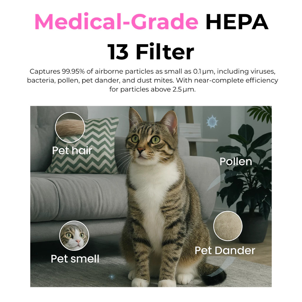 - Advanced Filtration: Triple-layer protection with medical grade H13 HEPA filter, negative ionizer, and UV light—removes 99.95% of airborne particles and germs for cleaner, healthier air
