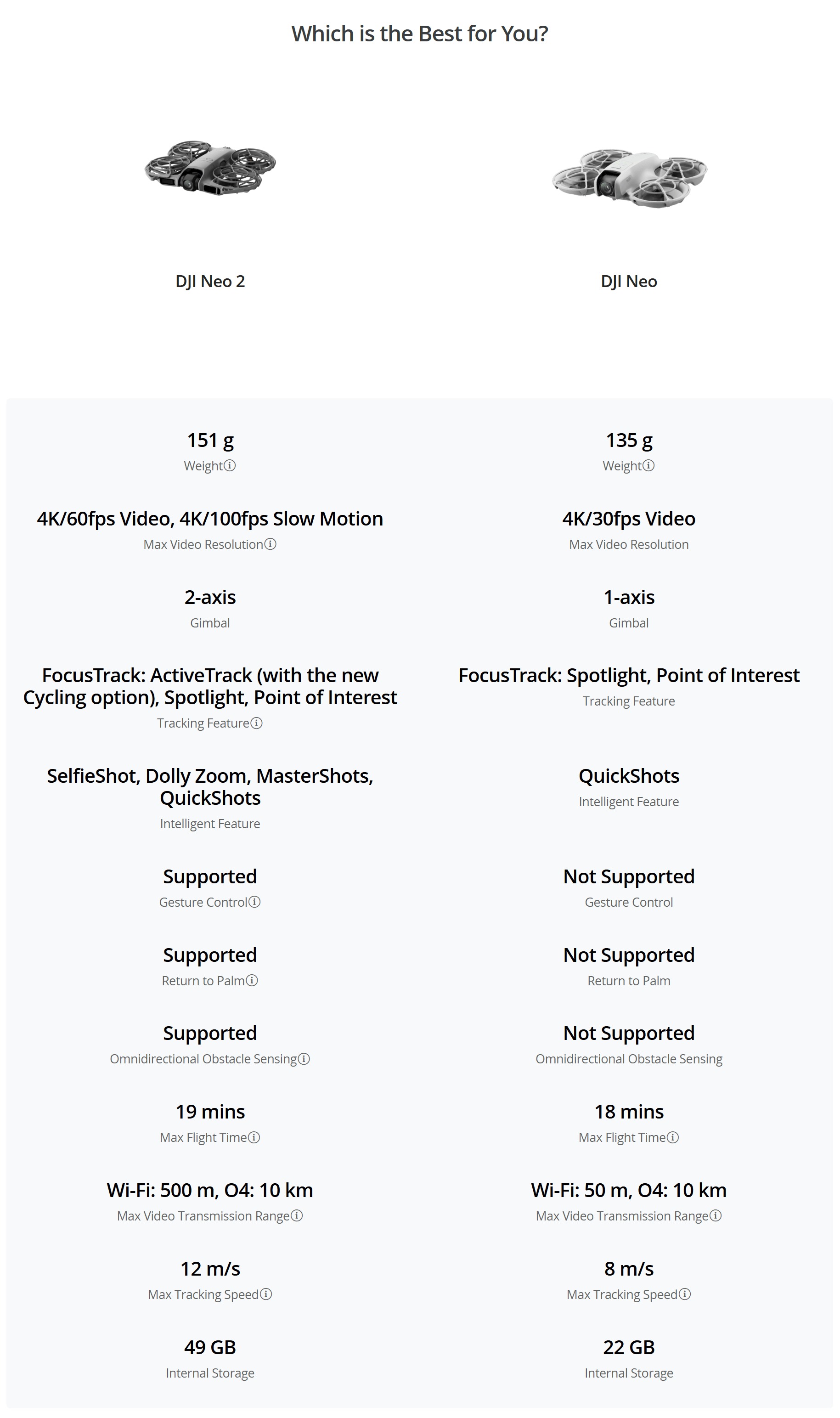 At just 151g, Neo 2 is DJI’s lightest and most compact drone equipped with omnidirectional obstacle sensing