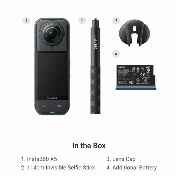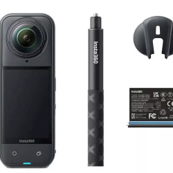 Upgrade your production to cinematic 360° video with the powerful Insta360 X5 360° 8K Camera, capable of capturing HDR 8K30 360° with PureVideo enhanced low-light technology in dual or single-lens modes, all in one portable action camera. The X5 offers an action-ready design with AI-powered software for an intuitive approach to creating dynamic content in any environment, as well as "Bullet Time" capture, 180 Mb/s bit rates, time shift, loop recording, and time-lapse. The X5 also has an updated rugged design, is natively waterproof up to 49', and has an upgraded rechargeable 2400mAh battery for an increased runtime of up to 88 minutes.