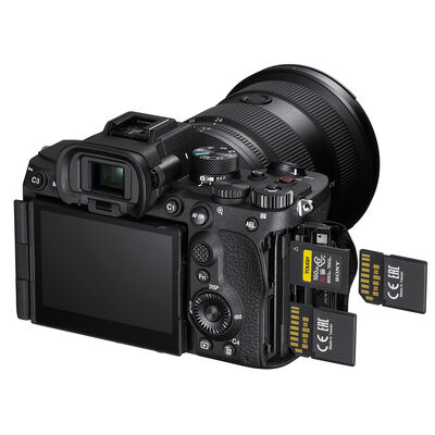 Dual memory card slots include one CFexpress Type A/SD UHS-II combination slot and one additional SD UHS-II slot. The dual slot design allows for flexible file saving and handling and can be configured to partition file types or can be used for overflow recording.
