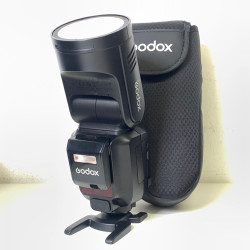 With a powerful 100W output and an innovative round head design, the V100 Flash for Canon from Godox is a compact and easy-to-use flash for portrait photographers. Designed with an integrated sub-flash, the V100 offers a 100W output and is ideal for on-location shooting. Its advanced cooling design allows for continuous shooting, offering 70 to 100 consecutive flashes with a 1/1 to 1/256 power range. The built-in 2W modeling lamp and automatic 28-105mm zoom range allows for more lighting control. The 1.7 second recycling time and the -7 to 120° tilt with 330° rotation offers greater flexibility and is compatible with Canon E-TTL / E-TTL II systems. Easily control settings with its large touch screen back and charge the batteries directly with a USB-C cable.