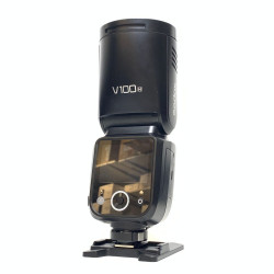 With a powerful 100W output and an innovative round head design, the V100 Flash for Canon from Godox is a compact and easy-to-use flash for portrait photographers. Designed with an integrated sub-flash, the V100 offers a 100W output and is ideal for on-location shooting. Its advanced cooling design allows for continuous shooting, offering 70 to 100 consecutive flashes with a 1/1 to 1/256 power range. The built-in 2W modeling lamp and automatic 28-105mm zoom range allows for more lighting control. The 1.7 second recycling time and the -7 to 120° tilt with 330° rotation offers greater flexibility and is compatible with Canon E-TTL / E-TTL II systems. Easily control settings with its large touch screen back and charge the batteries directly with a USB-C cable.