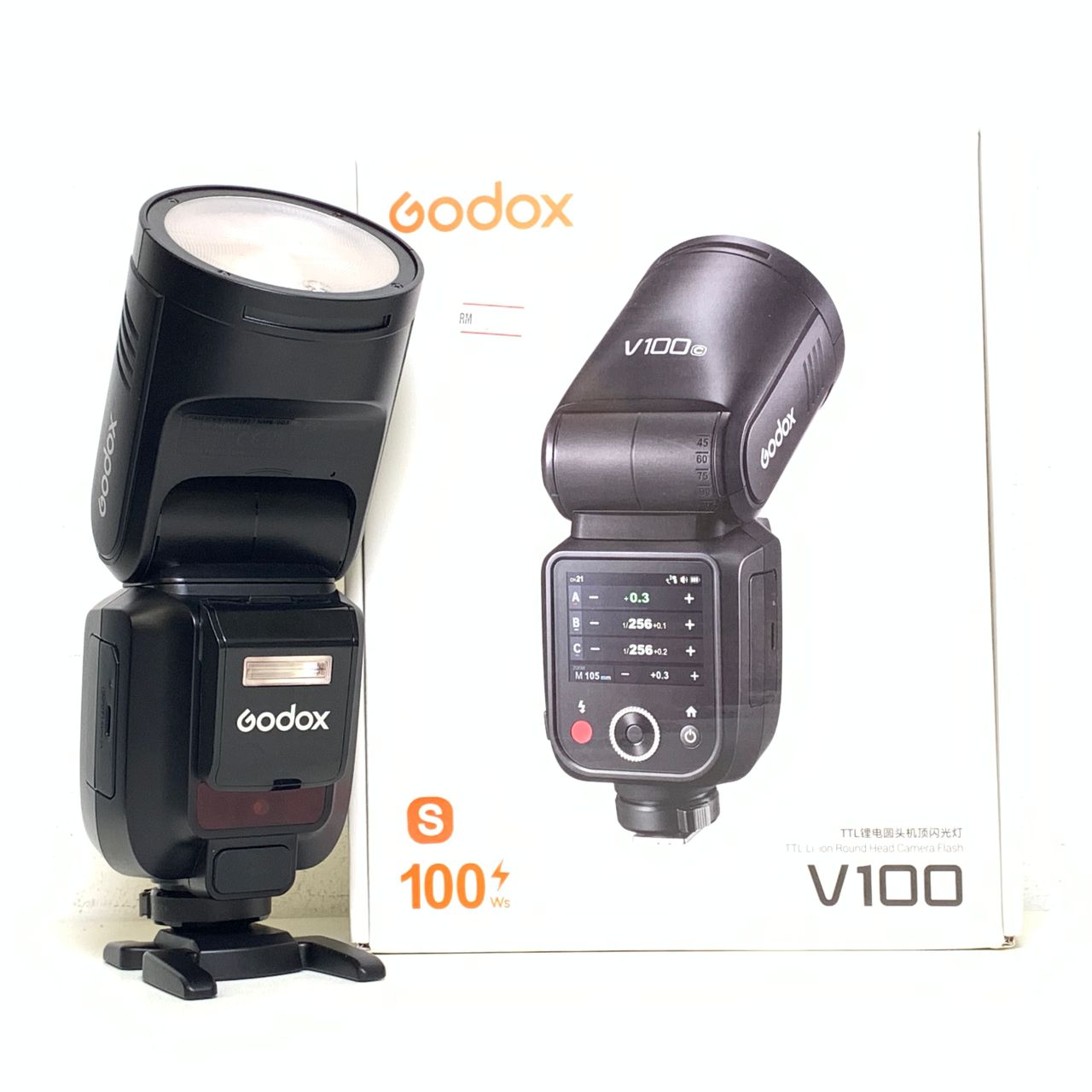 With a powerful 100W output and an innovative round head design, the V100 Flash for Sony from Godox is a compact and easy-to-use flash for portrait photographers. Designed with an integrated sub-flash, the V100 offers a 100W output and is ideal for on-location shooting. Its advanced cooling design allows for continuous shooting, offering 70 to 100 consecutive flashes with a 1/1 to 1/256 power range. The built-in 2W modeling lamp and automatic 28-105mm zoom range allows for more lighting control. The 1.7 second recycling time and the -7 to 120° tilt with 330° rotation offers greater flexibility and is compatible with Sony ADI / P-TTL systems. Easily control settings with its large touch screen back and charge the batteries directly with a USB-C cable. The V100 is also compatible with Sony cameras featuring a global shutter.