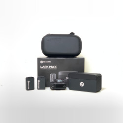 Featuring enhanced sound quality and MaxTimbre mic technology, the black LARK MAX Duo Wireless Microphone System from Hollyland can adapt to any run-and-gun journalism or content creation application thanks to its wide compatibility with cameras and smartphones. Two clip-on transmitters with built-in omnidirectional microphones can record up to two subjects and offer backup recording for extra security in the field. The system features a 820' line-of-sight maximum transmission distance. Keep it all going with the included charging case to extend the system's battery life.